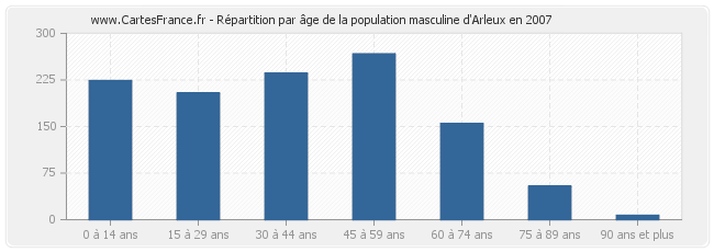 Répartition de la population masculine d'Arleux par âge en 2007 :