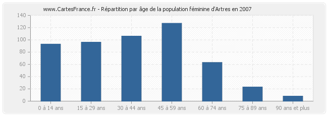 Répartition de la population féminine d'Artres par âge en 2007 :