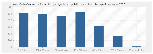 Répartition de la population masculine d'Aulnoye-Aymeries par âge en 2007 :