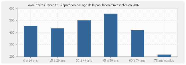 - Population d'Avesnelles de 45 à 59 ans : 556 habitants