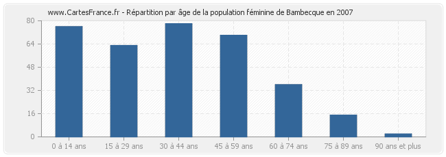 Répartition de la population féminine de Bambecque par âge en 2007 :