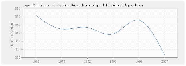 Cette courbe reprend l'historique de la population de Bas-Lieu de 1968 à 2007 en interpolation cubique. Ceci permet d'obtenir plus précisément la population de la commune de Bas-Lieu les années ou aucun recensement n'a été effectué.