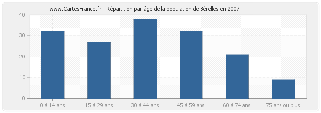 - Population de Bérelles de 30 à 44 ans : 37 habitants