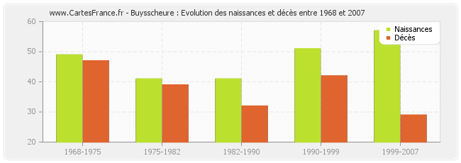 Buysscheure : évolution des naissances et décès de 1968 à 2007
