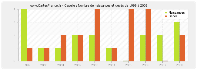 - Capelle en 2005 : 0 naissances et 4 décès