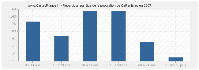 - Population de Cattenières de 45 à 59 ans : 155 habitants