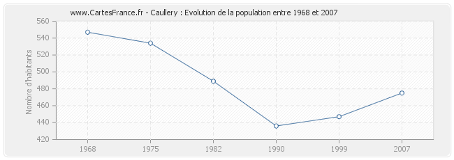 La population de Caullery était de 475 habitants en 2007, 447 habitants en 1999, 436 habitants en 1990, 489 habitants en 1982, 534 habitants en 1975 et 547 habitants en 1968.