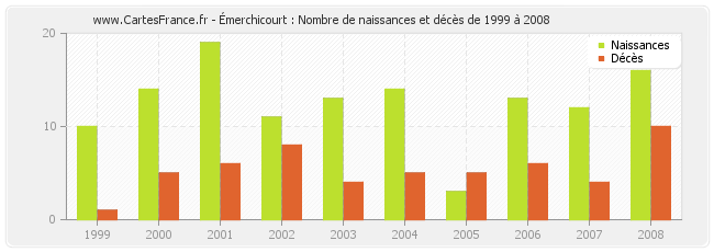 - Émerchicourt en 2008 : 16 naissances et 10 décès
