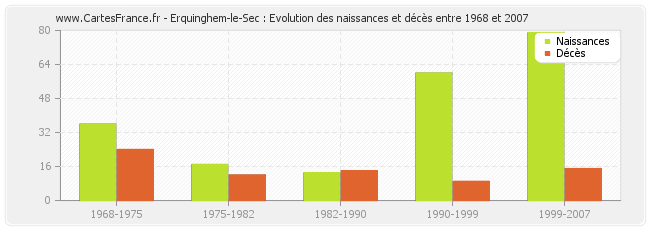 Erquinghem-le-Sec : évolution des naissances et décès de 1968 à 2007