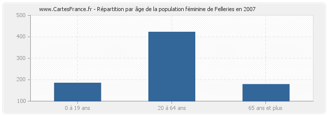 - Femmes de 20 à 64 ans habitant Felleries : 422