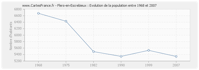 - Population de Flers-en-Escrebieux en 1968 : 6 675 habitants