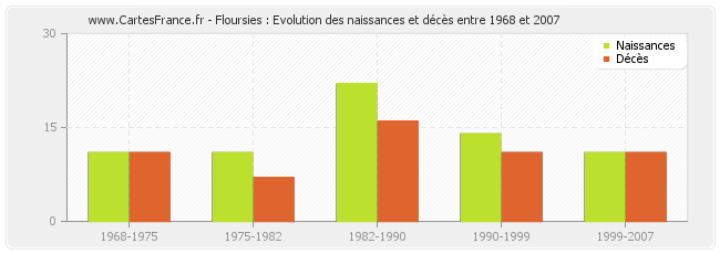 Floursies : évolution des naissances et décès de 1968 à 2007
