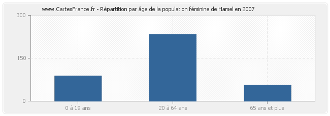 Répartition de la population féminine de Hamel par âge en 2007 :
