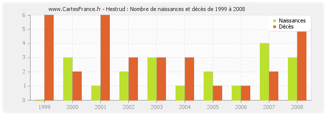 - Hestrud en 1999 : 0 naissances et 6 décès