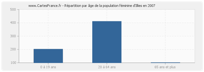 Répartition de la population féminine d'Illies par âge en 2007 :