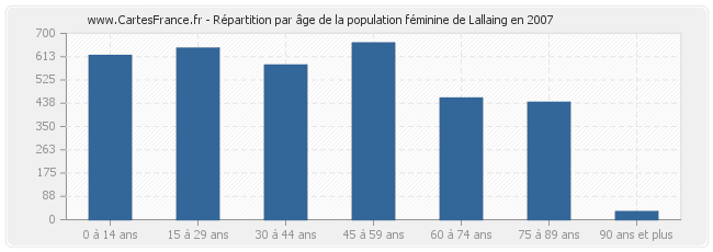 Répartition de la population féminine de Lallaing par âge en 2007 :
