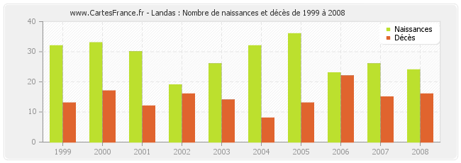- Population de Landas de 30 à 44 ans : 545 habitants