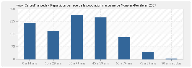 Répartition de la population masculine de Mons-en-Pévèle par âge en 2007 :