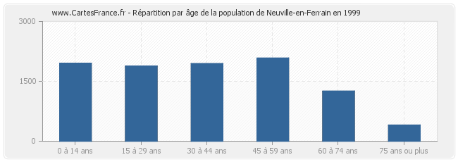 Répartition de la population de Neuville-en-Ferrain par âge en 1999 :