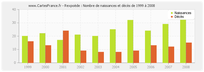 - Rexpoëde en 2008 : 33 naissances et 15 décès