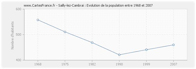 Historique de la population de Sailly-lez-Cambrai de 1968 à 2007