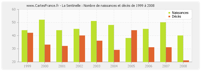 - La Sentinelle en 2008 : 40 naissances et 21 décès