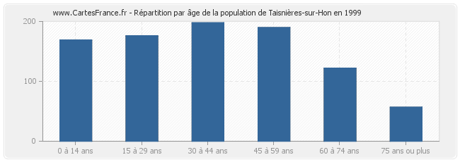 - Population de Taisnières-sur-Hon de 45 à 59 ans : 190 habitants