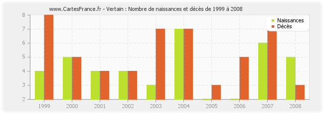 Vertain : évolution des naissances et décès de 1968 à 2007
