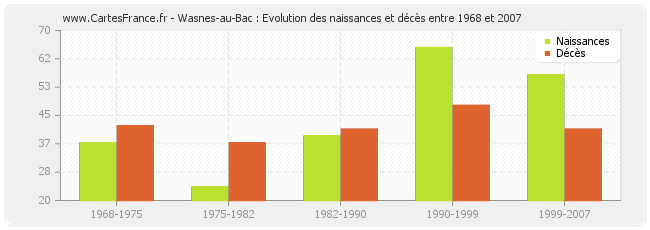 Wasnes-au-Bac : évolution des naissances et décès de 1968 à 2007
