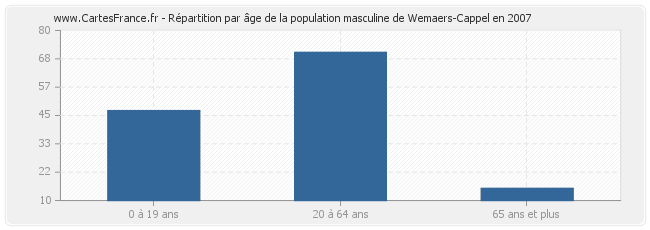 Répartition de la population masculine de Wemaers-Cappel par âge en 2007 :