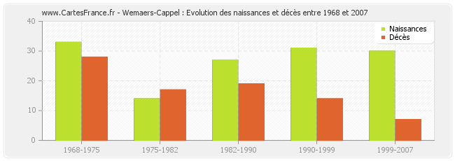 Wemaers-Cappel : évolution des naissances et décès de 1968 à 2007