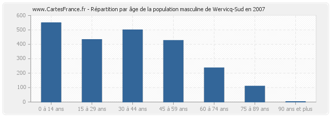 - Hommes de 0 à 14 ans habitant Wervicq-Sud : 549