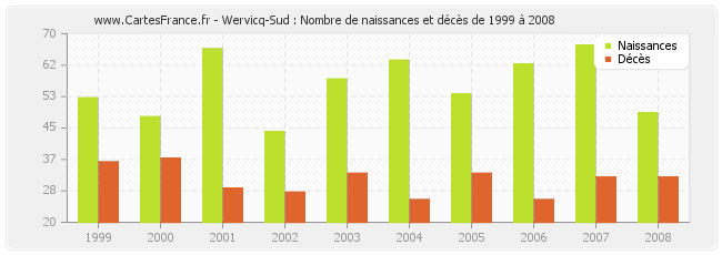 - Wervicq-Sud en 2008 : 49 naissances et 32 décès