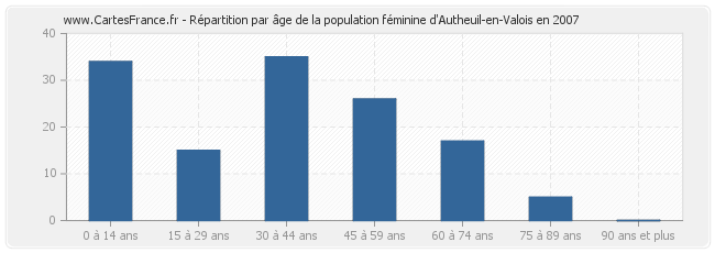 - Femmes de 30 à 44 ans habitant Autheuil-en-Valois : 35