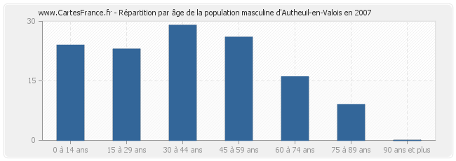 Répartition de la population masculine d'Autheuil-en-Valois par âge en 2007 :