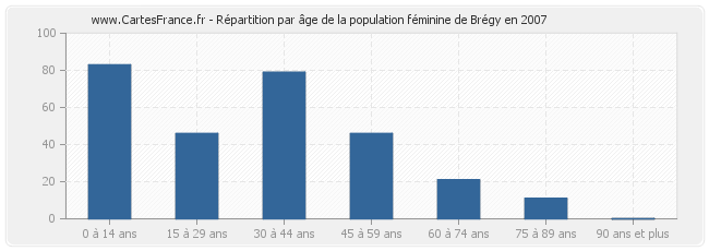 Répartition de la population féminine de Brégy par âge en 2007 :