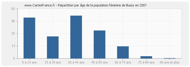 Répartition de la population féminine de Bussy par âge en 2007 :