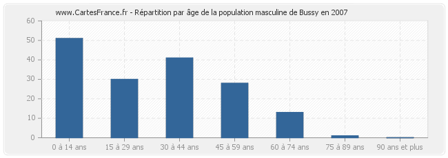 - Hommes de 0 à 14 ans habitant Bussy : 51