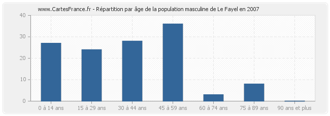 - Hommes de 45 à 59 ans habitant Le Fayel : 36