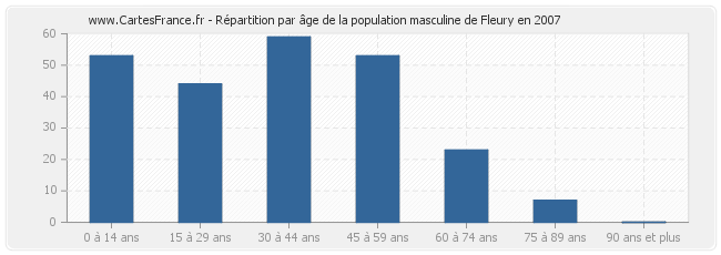 Répartition de la population masculine de Fleury par âge en 2007 :