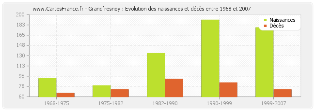 Grandfresnoy : évolution des naissances et décès de 1968 à 2007