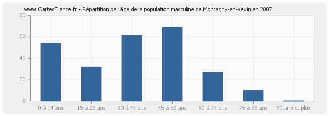 - Hommes de 45 à 59 ans habitant Montagny-en-Vexin : 69