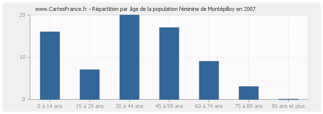 Répartition de la population féminine de Montépilloy par âge en 2007 :
