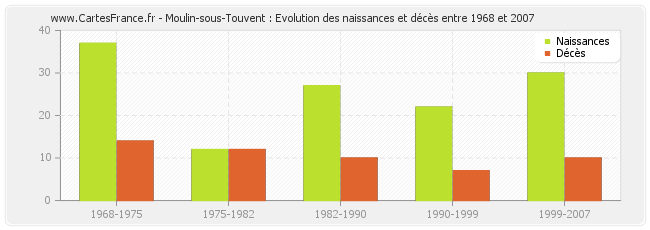Moulin-sous-Touvent : évolution des naissances et décès de 1968 à 2007