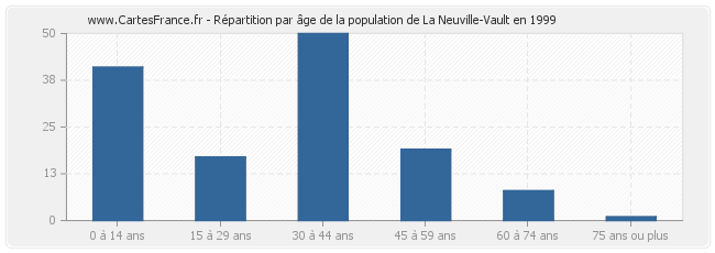 Répartition de la population de La Neuville-Vault par âge en 1999 :