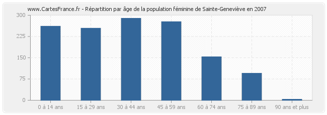 Répartition de la population féminine de Sainte-Geneviève par âge en 2007 :