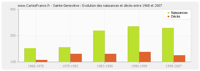 Sainte-Geneviève : évolution des naissances et décès de 1968 à 2007