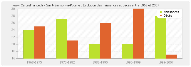 Saint-Samson-la-Poterie : évolution des naissances et décès de 1968 à 2007