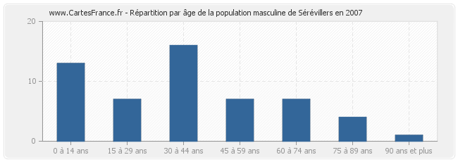 Répartition de la population masculine de Sérévillers par âge en 2007 :