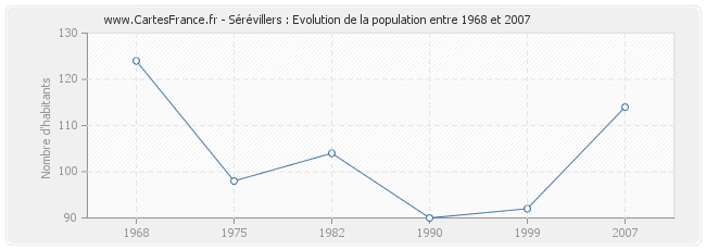 La population de Sérévillers était de 114 habitants en 2007, 92 habitants en 1999, 90 habitants en 1990, 104 habitants en 1982, 98 habitants en 1975 et 124 habitants en 1968.